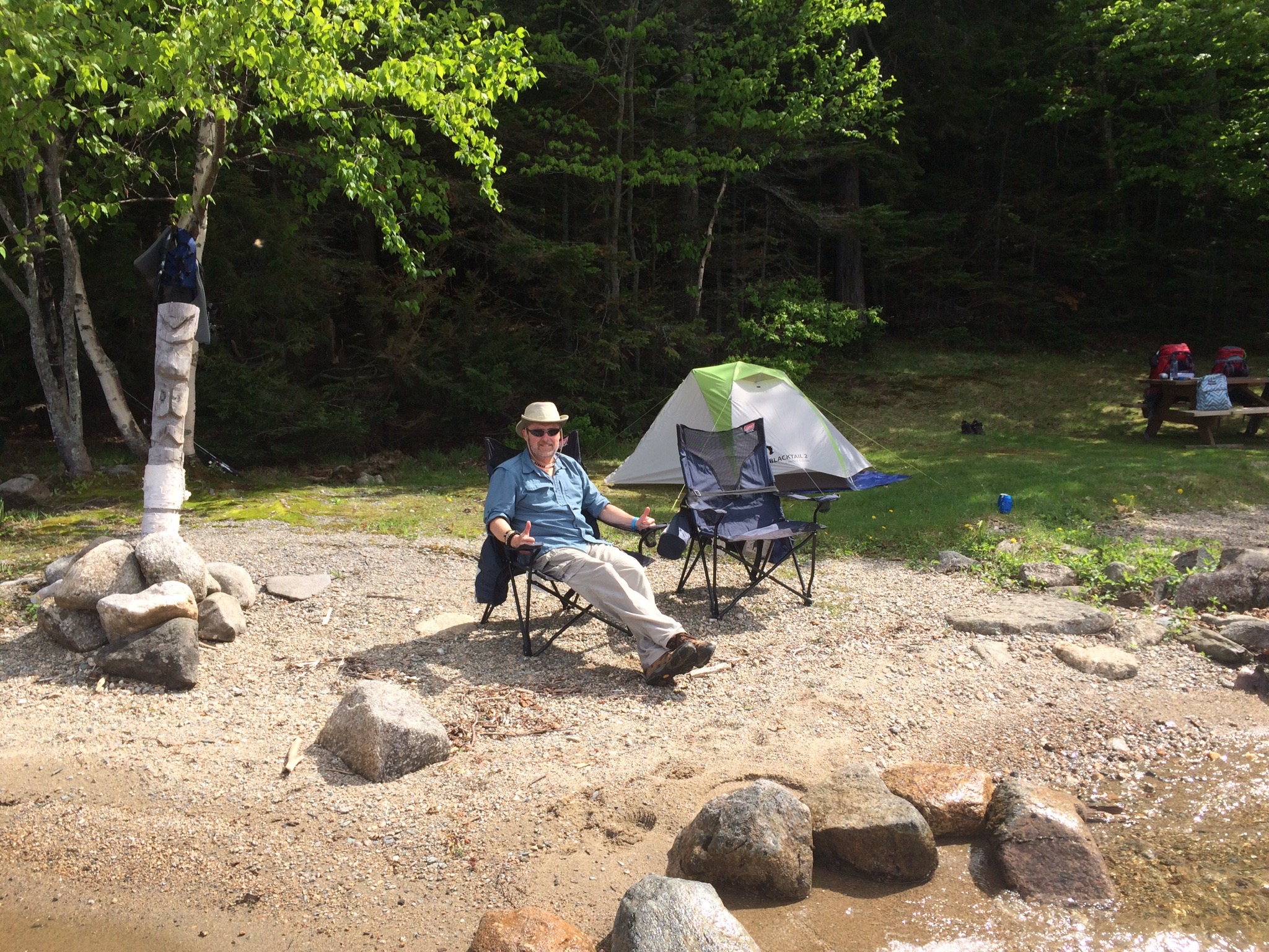 Since this trip was in early June it still gets pretty cold at night, in that part of Maine. On the first night the temperature dropped to a mere 39 degrees. Upon waking in the middle of the night my feet were freezing. But, we had prepared by bringing along a cheap comforter. Once we slung that over our sleeping bags we were plenty toasty for the remainder of the night.
