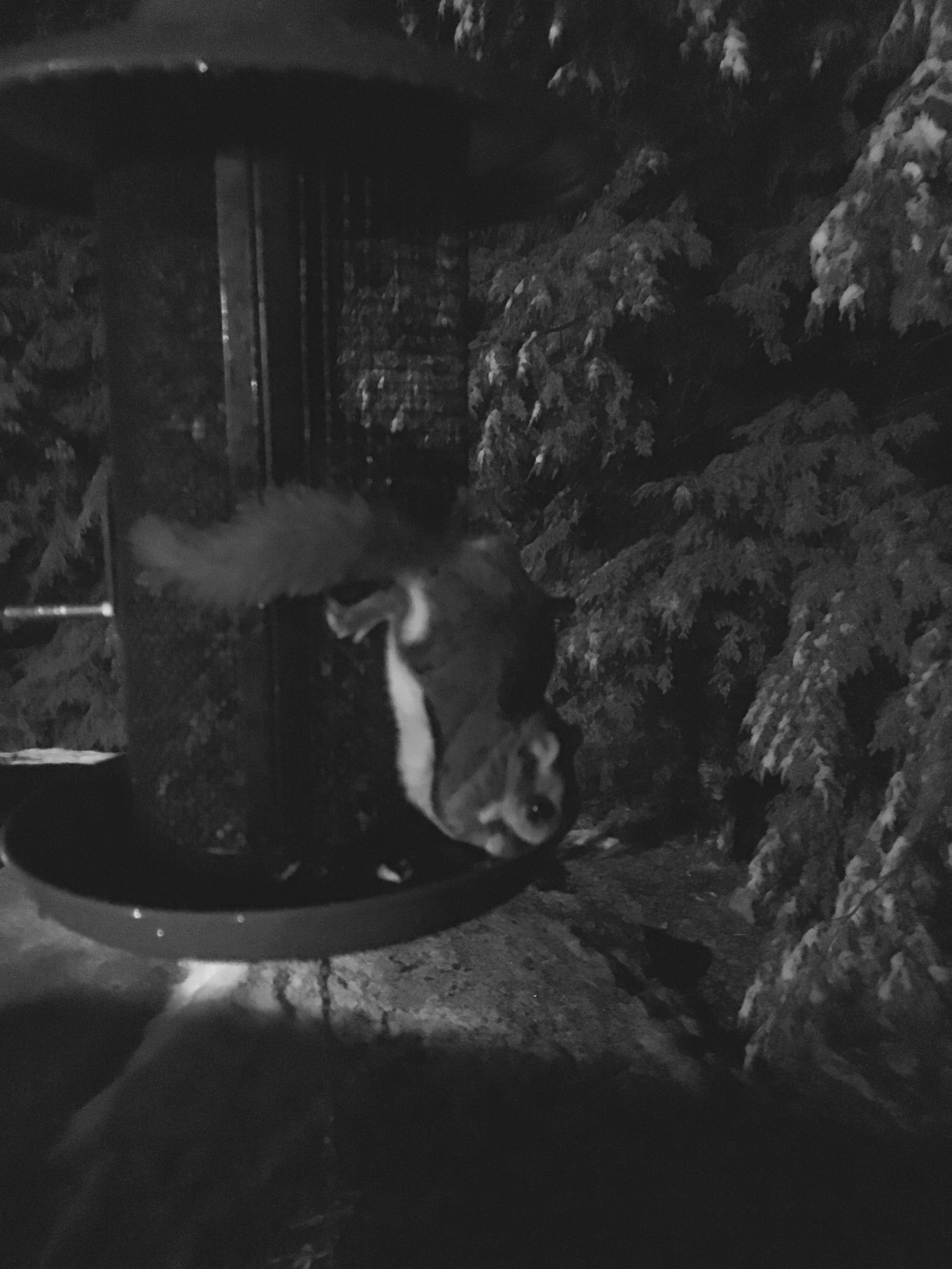 And, while not clear in the picture above, there is a sole loon out there, diving for fish, just beyond the layer of ice covering our cove.